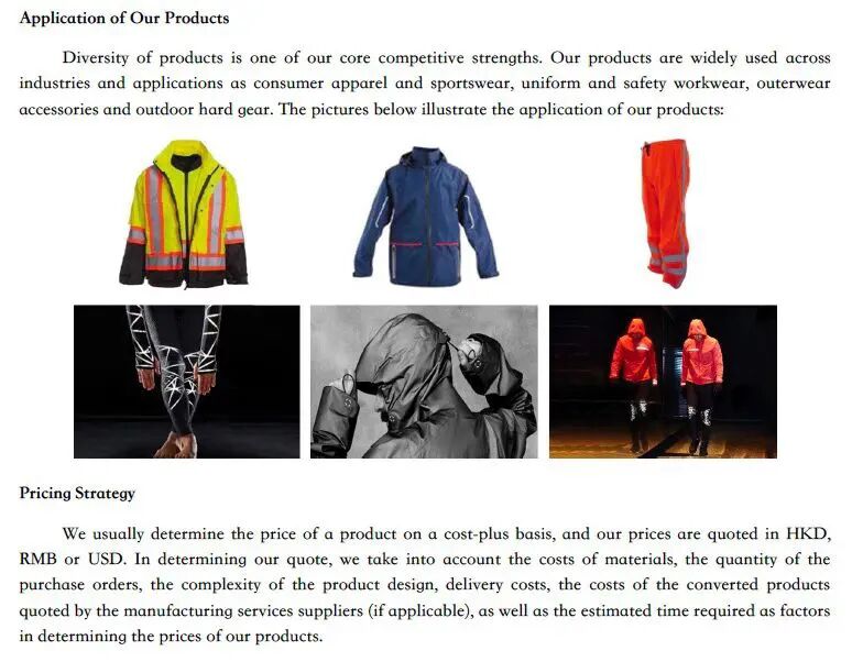 此外,即亮集团还提供广泛的服装解决方案服务,以满足客户对反光和非反光服装饰条的需求,包括市场趋势分析、产品设计和开发、生产和质量控制。公司与客户合作,满足他们对即将到来季节的产品需求,并通常根据多年来积累的专业知识和广泛的行业经验,为产品设计和使用适当材料提供各种建议。