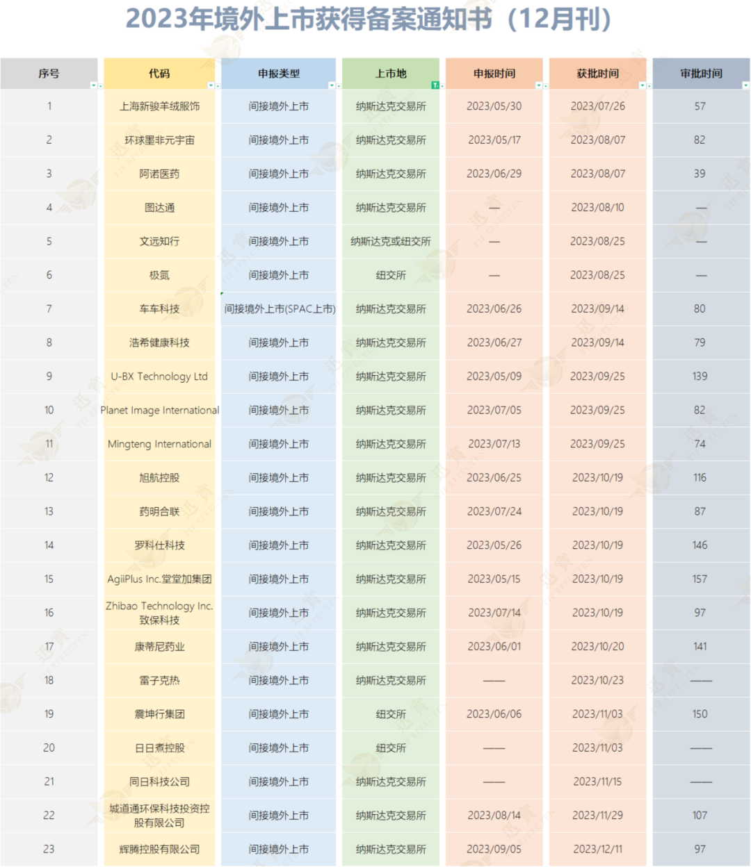 根据中国证监会官网的披露,截至发稿时,已有54家拟赴美上市的企业提交备案(未含秘密交易)。审批的时长从申报递交备案材料到获得备案通知书,大多在一个月到三个月之间。备案新规的常态化推进使得更多企业获得了通过,进一步符合市场预期,为企业赴境外上市提供了更加透明、可预期的制度环境。