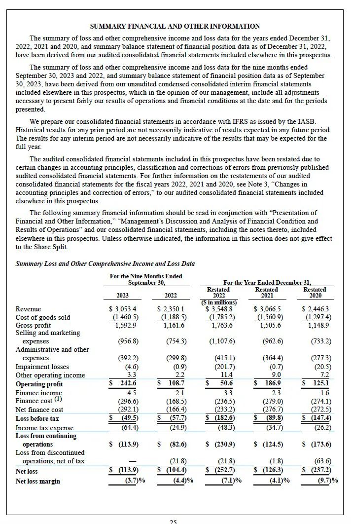 2020年至2022年,亚玛芬体育的营收分别为24.46亿美元、30.67亿美元和35.49亿美元;调整后EBITDA分别为3.11亿美元、4.17亿美元和4.53亿美元,复合年增长率为20.6%。