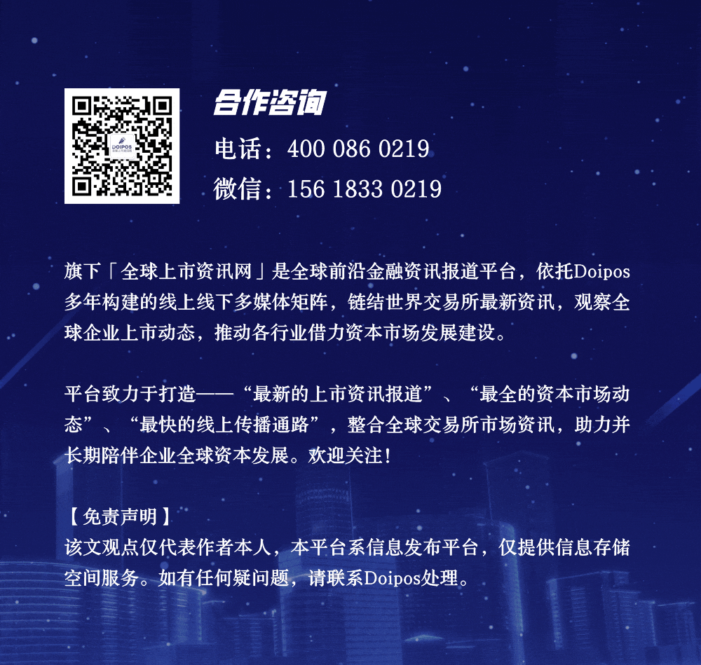 金融前沿资讯报道,「全球上市资讯网」系Doipos.com旗下专注金融资讯公众号,欢迎关注!