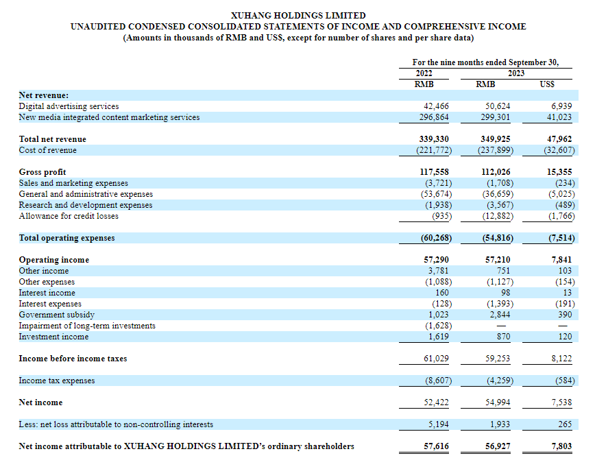 招股书显示,在过去的2021年、2022年和2023年前九个月,旭航集团的收入分别为4.71亿、4.78亿和3.50亿元人民币,相应的净利润分别为7,730.3万、7,601.8万和5,692.7万元人民币。