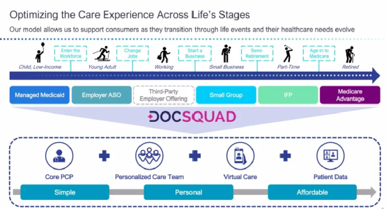 公司有两个业务,一是NeueHealth,这是一个医疗健康机构(care delivery system);二是Bright HealthCare,这是一个保险机构(health plan)。Bright采用差异化的护理提供方法,采用专门构建的规模化模型来解决最需要和成本最高的患者所需的三项关键服务。