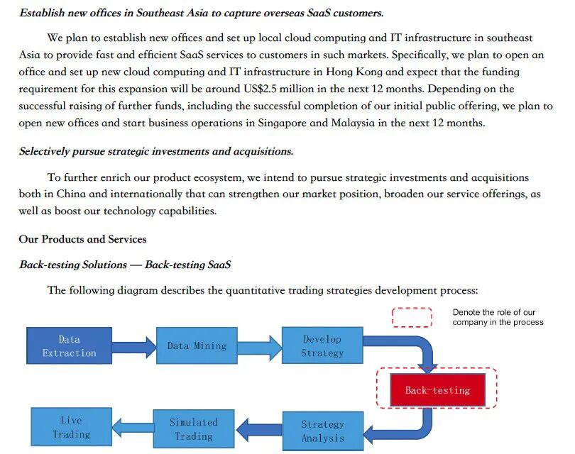 公司的回测服务包括基于云的SaaS解决方案,以及定制的回测系统开发,公司还通过提供企业管理SaaS解决方案来满足中小企业的需求。公司的平台涵盖销售和营销管理、人力资源管理、行政和运营以及客户关系管理等基本业务功能。公司还提供软件系统开发服务。