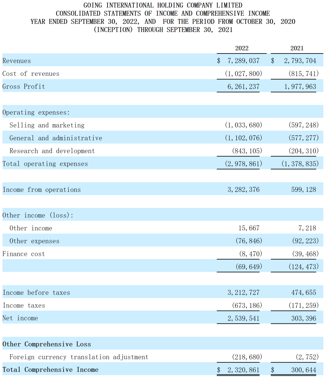 招股书显示,在过去的2021财年、2022财年(财政年度截止时间为每年9月30日)和2023年前六个月(截至2023年3月31日),高盈科技的收入分别为279.37万、728.90万和552.81万美元,相应的净利润分别为30.06万、232.09万和222.18万美元。